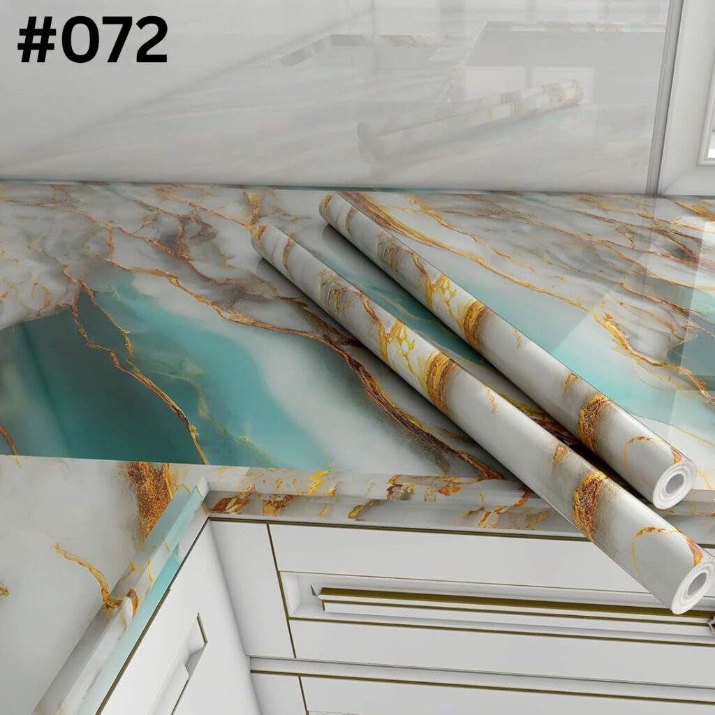 The Marble Design Self-Adhesive PVC 3D Wall Sticker is a simple way to upgrade walls with a modern decorative look. Its turquoise gold marble pattern adds a stylish touch to kitchens, living rooms, bedrooms, or café spaces.